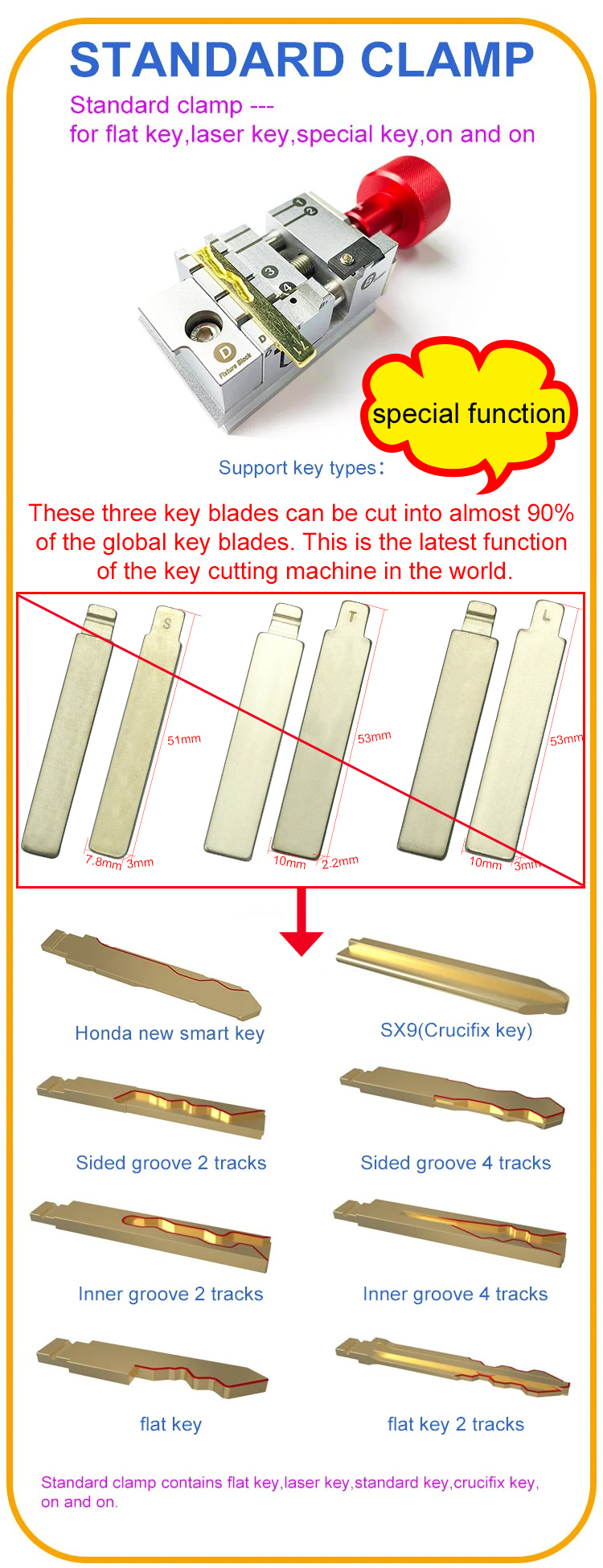 These three key blades can be cut into almost 90% of the global key blades.